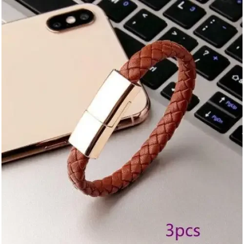 Stylish Braided Leather Bracelets with Built-in USB Charger for Phones
