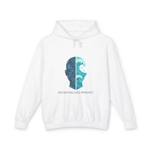 Decentralized Mindset Hoodie — Ocean Wave Split Face Graphic Hooded Sweatshirt