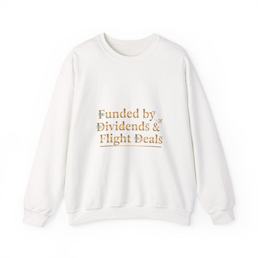Crewneck Sweatshirt — “Funded by Dividends & Flight Deals” Minimal Investment Travel Tee