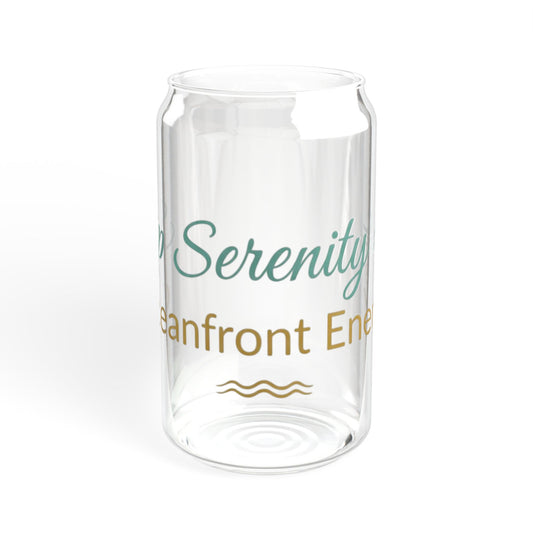 Oceanfront “Sip Serenity” Frosted Glass Cup | Luxury Coastal Glass with Bamboo Lid & Straw