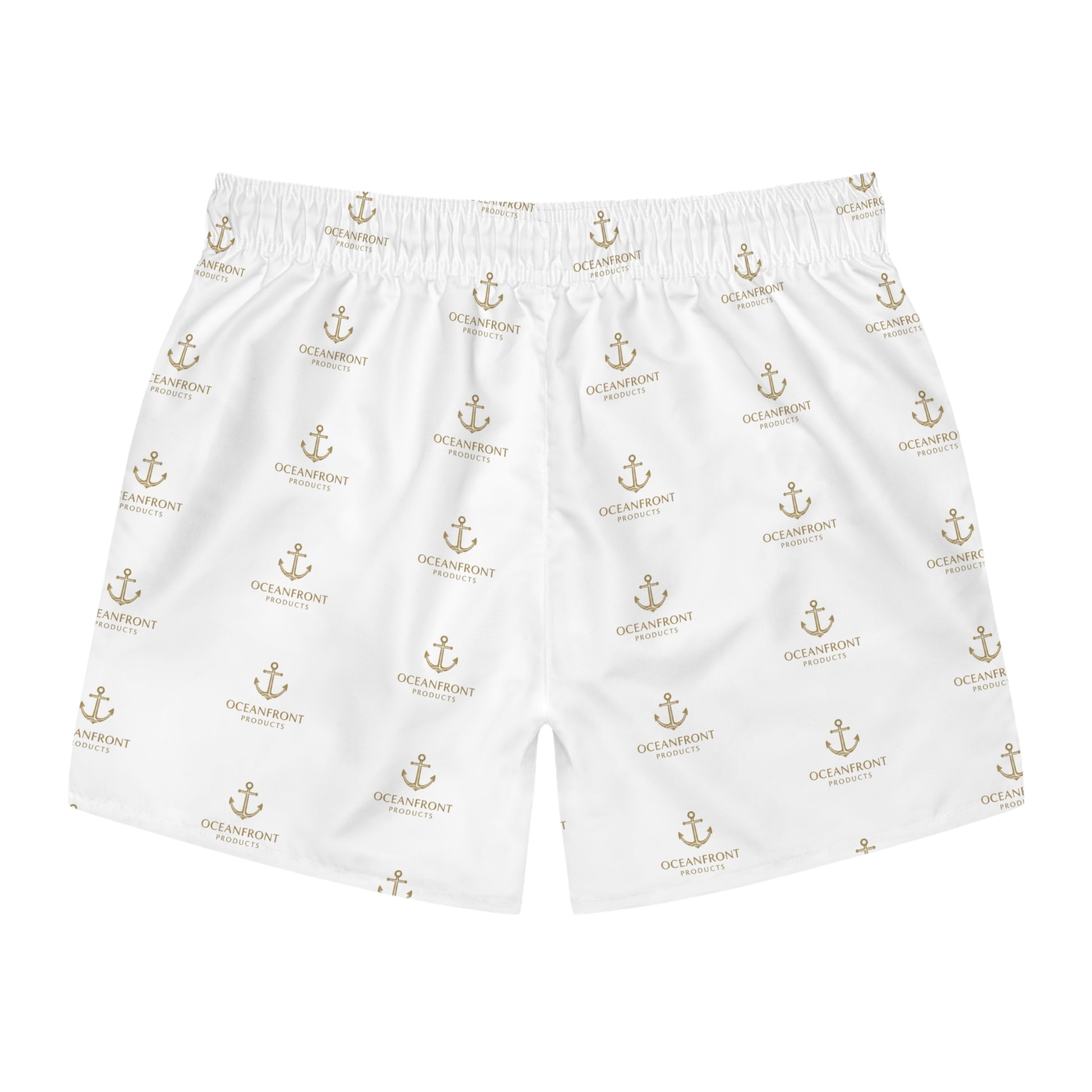 Nautical Anchor Print Swim Trunks – White All-Over Logo Pattern