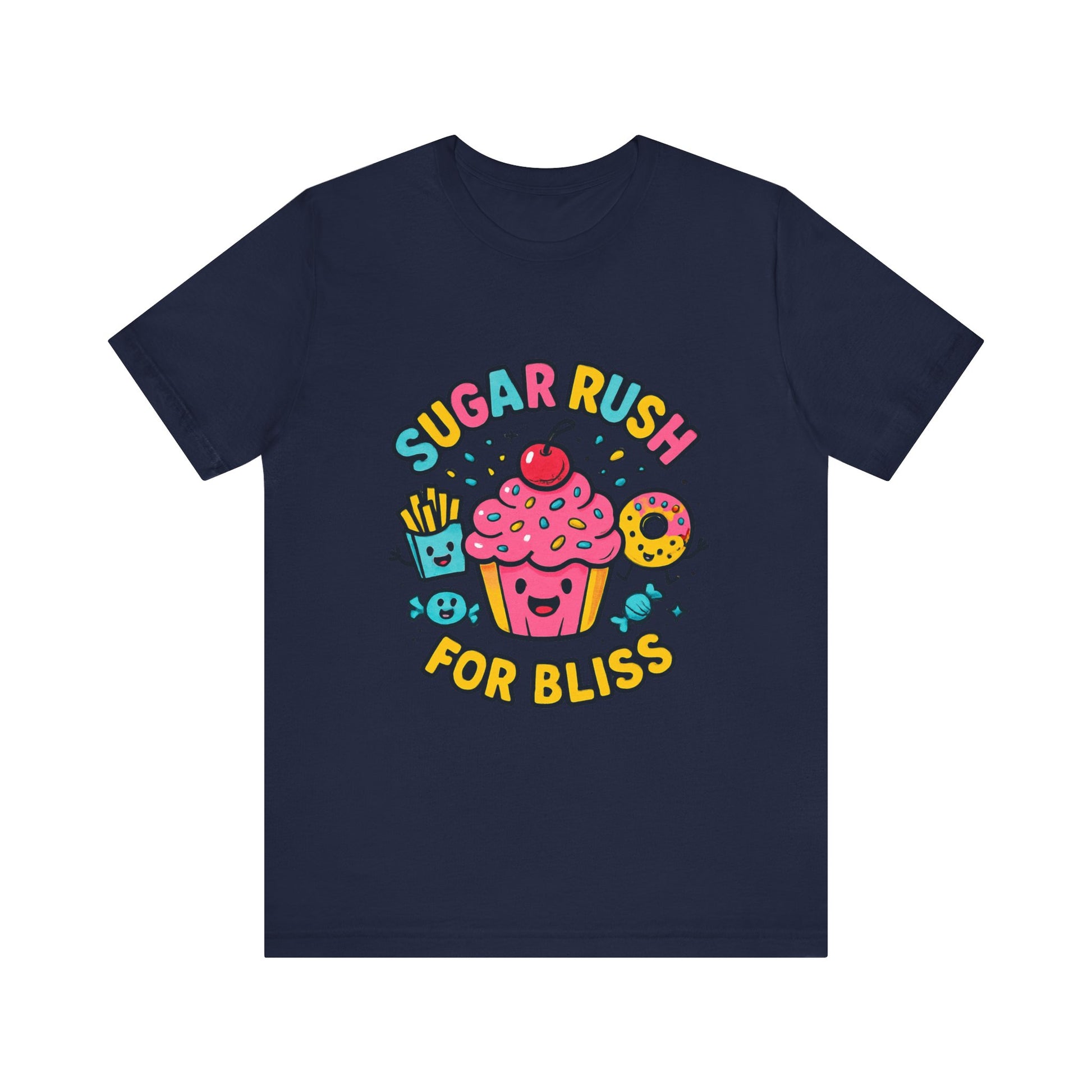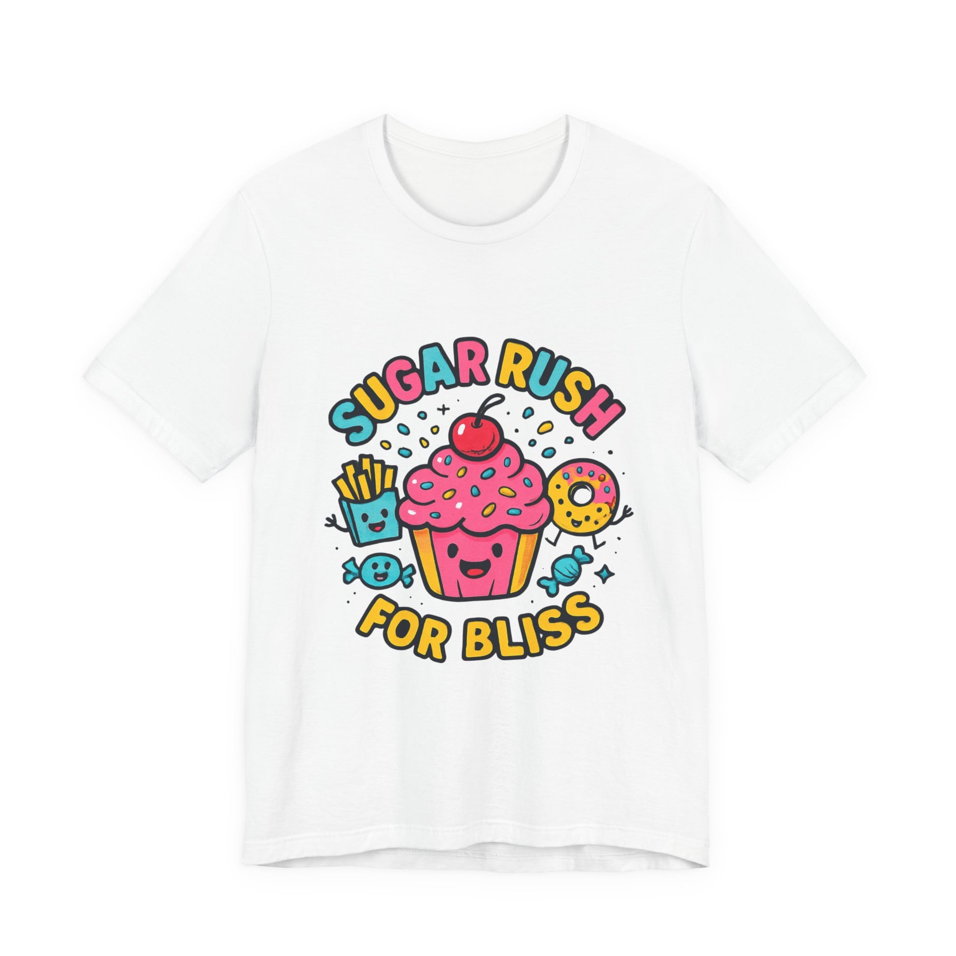 Sugar Rush for Bliss – Cartoon Snack Party Tee | Colorful Cupcake Design | Whimsical Foodie Shirt | Kawaii Vaporwave Candy Aesthetic